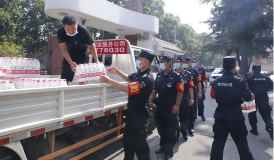 8月3日上午,南阳市总工会副主席张亭,市总工会民管部、组织部、经审部等有关领导一行,带着市总工会的关爱和问候,在公司党委书记、总经理张建国,党委副书记、纪检书记、常务副总经理蓝成云,公司工会主席王峰等的陪同下来到市保安公司,为炎炎夏日坚守在工作一线的保安员工送来了藿香正气液、茶杯、矿泉水、毛巾、清凉油等防暑降温用品,让保安员工们在炎热的夏天感受到了阵阵清凉。