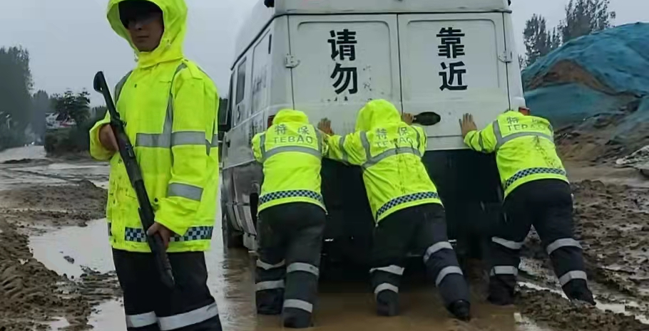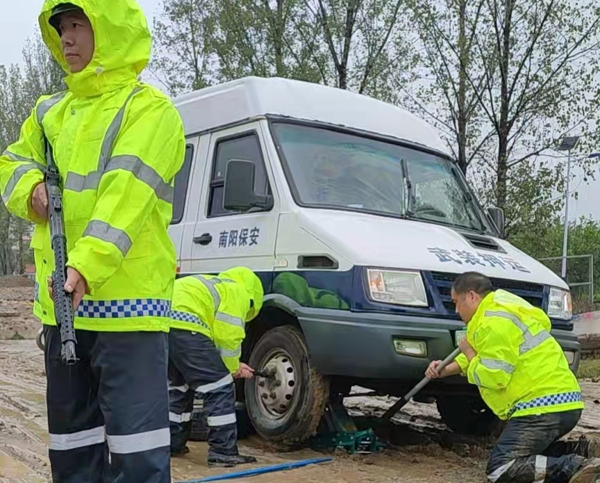 今年进入夏季以来,持续的降雨天气致使南召县连续发布暴雨红色、雷电黄色预警,多地出现极端降水。这场特大暴雨历史罕见,仅仅几个小时的降水量居然超过了南召县上半年的降水量,引发了不同程度的河流涨水、山体滑坡等地质灾害,境内多条省道、县乡道路不同程度被淹,多处内涝,停水停电,部分交通瘫痪。这给每天承担着南召县域各金融网点现钞押运工作任务的yx06永兴彩票集团南召押运大队带来了诸多不便和困难,也让负责守押工作的保安队员们经受着一次次风雨考验。