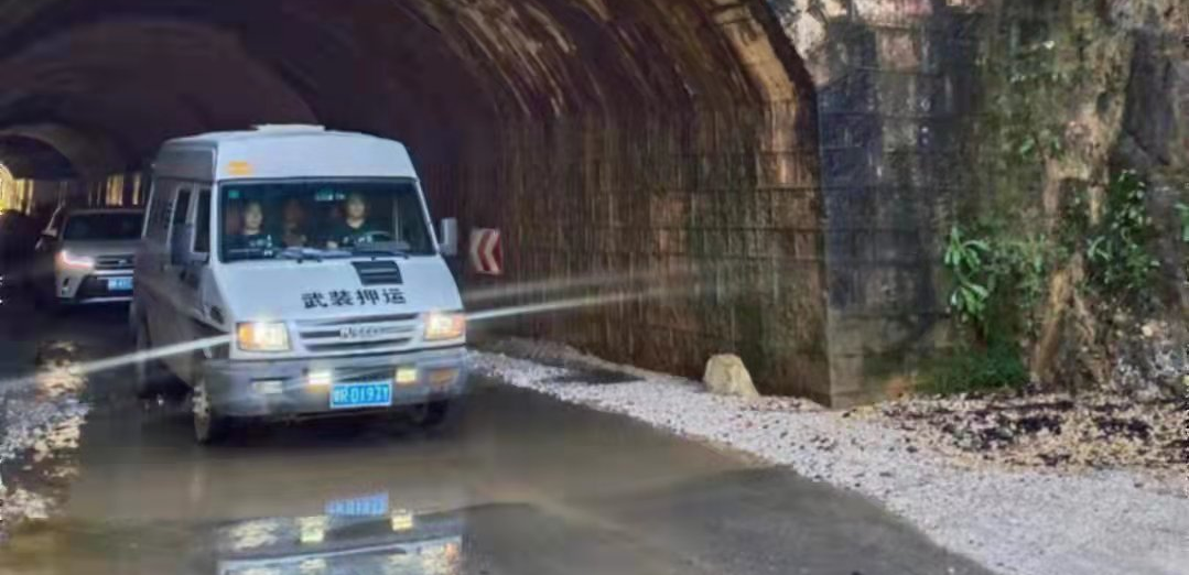 屋漏偏遇连阴雨。各车组离开县城后全部出现信号失联情况,就连车内安装的GPS系统也无法联系。面对着暴雨袭来、洪水肆虐、山体滑坡及道路塌陷等随即可能发生的灾情风险,又加上信号失联故障发生,这给各车组统一联络、调配、指挥和安全作业带来了更大的风险和挑战,同时也对各车长和守押队员来说又是一次的考验。在这样险不可测的情境下,各车组只有独立作战。云北车组在向东网点作业时,由于泥泞的道路时而被冲积的杂物所覆盖,车辆突然间发生两个轮胎漏气现象。停车检查,发现是被钉子扎破,可备胎只有一只,又加上全体车辆失联无外援,司机隋江涛趴在泥泞中更换了备胎,而后车长和其他人员在车上锁死车门警戒等候,并求助一过路的小货车将另一只轮胎拉到云阳城区进行补胎,最后安全地将继续地将现钞运到各网点。