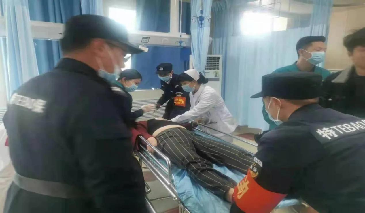 12月24日早上7点15分,yx06永兴彩票集团第九勤务大队驻市中心医院保安班长刘保安正在该院北门值班。突然听到一女子哭喊着“救救我,救救我"的声音,循声望去发现,门外一群人正抬着一病人向大门口跑来。刘保安觉得情况不妙,立即火速冲向七号楼大厅喊来队员金泽太、路兴菇、闫光建、郑继元及两名护士,协助打开人行通道,帮助来人抬着担架,快速将病人抬到一号楼妇产科救治。