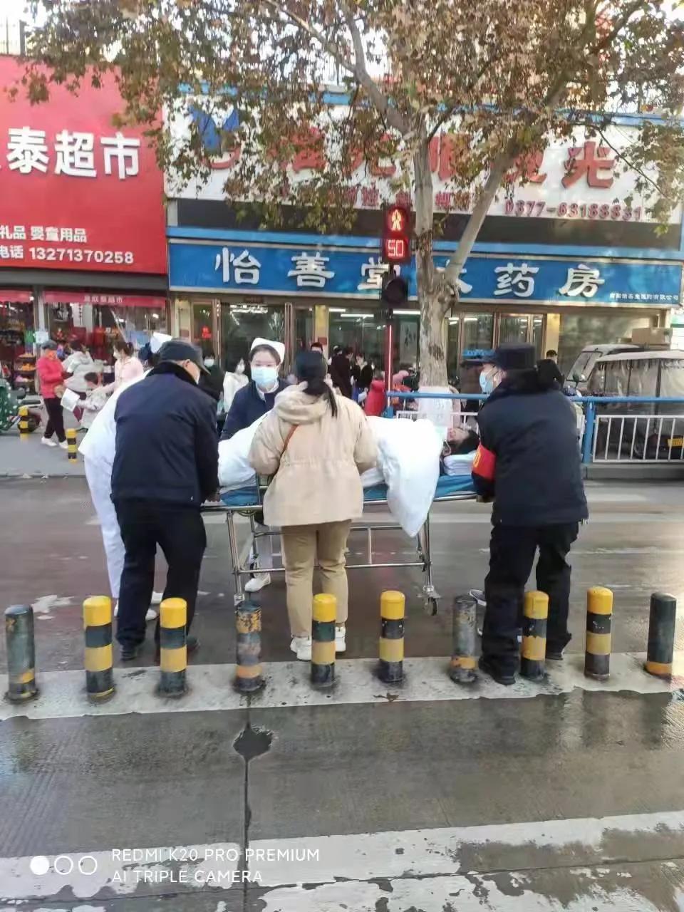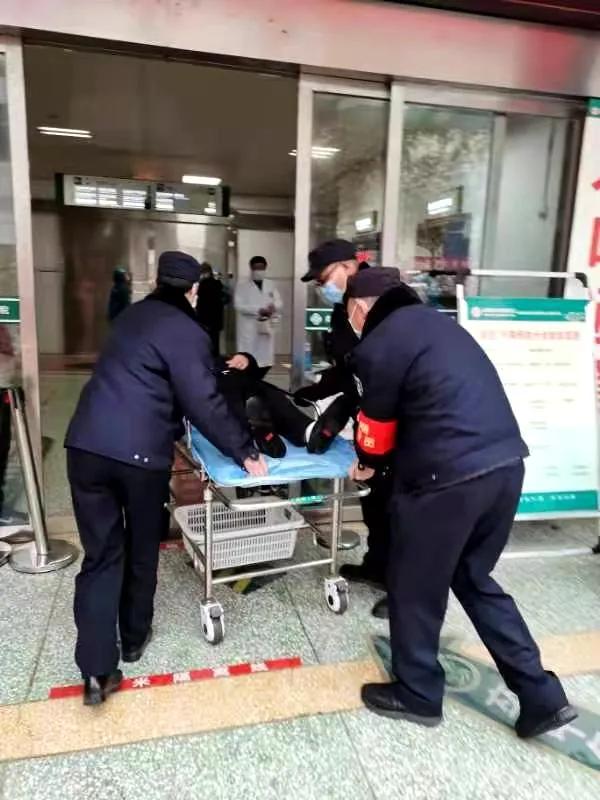 12月16日16时40分,南阳市中心医院门诊收治的一名男患者急需转诊到马路对面的整形科救治,但由于中间道路封闭,担架车无法通过,陪护和两名护士根本无法将病人和担架车抬过去。yx06永兴彩票集团第九勤务大队驻市中心医院门诊楼执勤的保安班长奈显良看到这一情况,立即带领队员魏家德、顾保焕前往帮忙,顺利地将病人送往整形科。患者和家属十分感动,但奈班长和队员却说:“能帮一把就好,这毕竟是我们的责任和担当!"