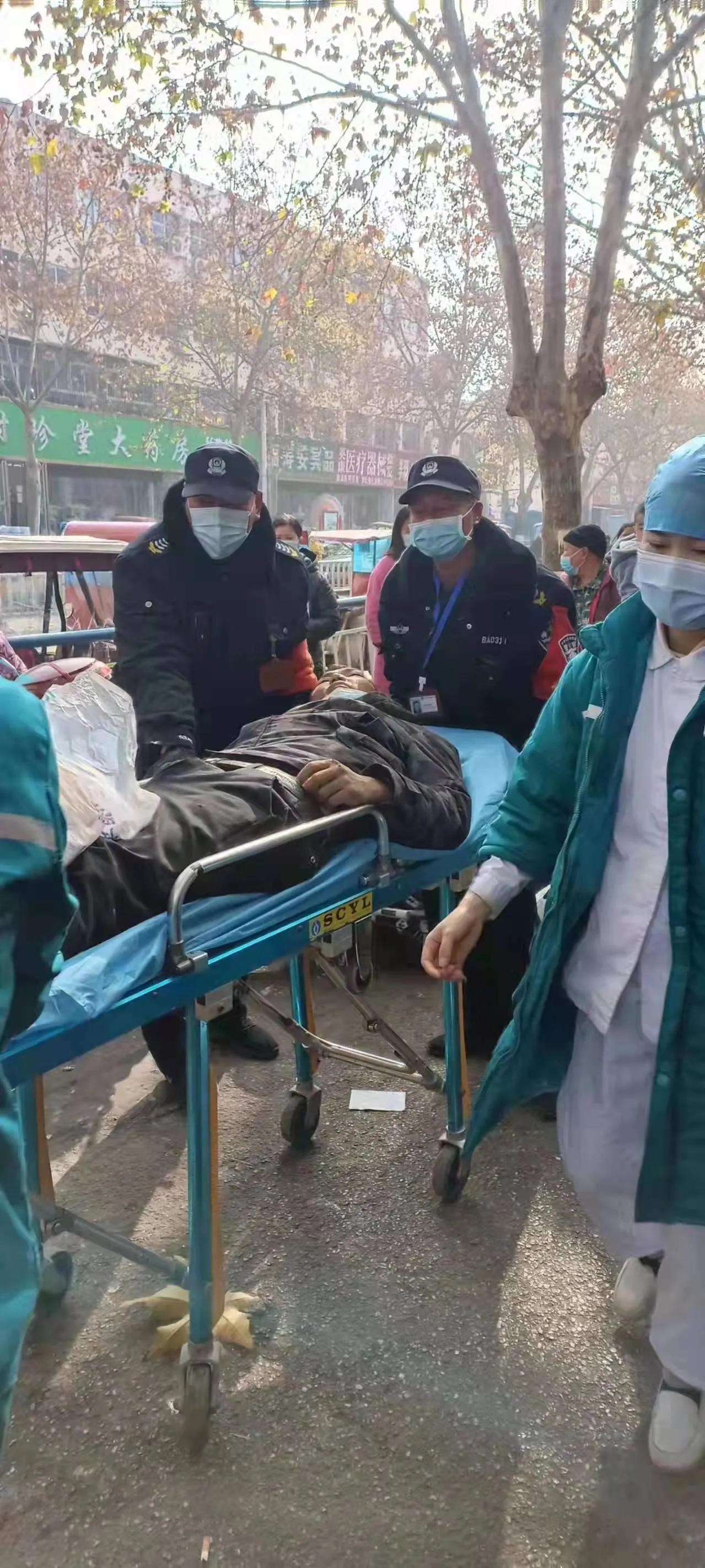 12月14曰上午11点40分,yx06永兴彩票集团第九勤务大队驻市中心医院东一门班长马红峰执勤时,发现一名男子突然晕倒,口吐饭食,气味难闻,情况非常危急。他首先向急救中心报告,并迅速呼叫队员耿全兴、任何亮火速借来板车准备推人,同时让巡逻队员闫光建给予支援。为防止患者吐出的污秽物堵塞呼吸,组织大家及时清理了患者吐出的污物。随后将患者送到急救科救治。