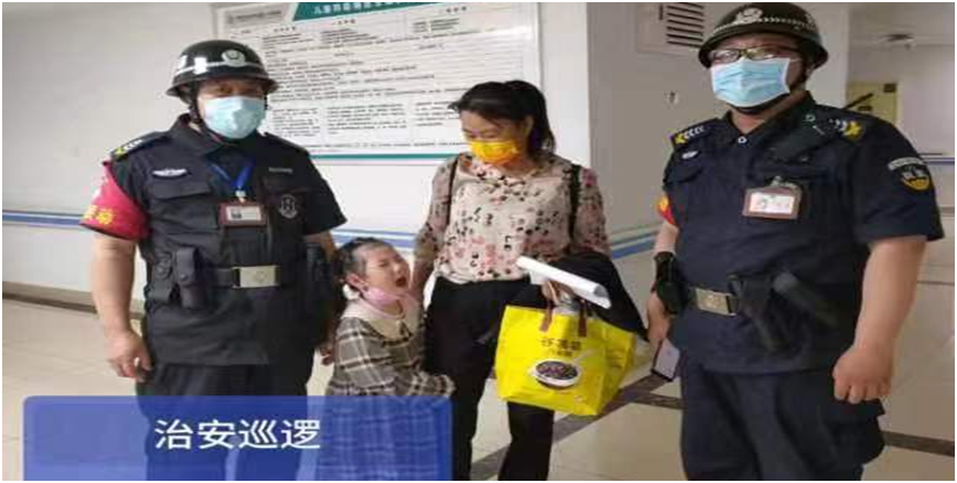 5月9号19时20分,南阳市保安公司驻勤市中心医院一号楼门口保安接到一中年男子求助,说自己4岁女儿走失。该保安立刻组织队员分两组在一号楼搜寻,最终在9楼胃肠外科找到走失的小女孩,家属深表感谢。
