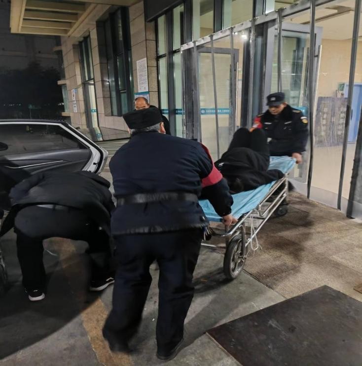 1月29日22时46分,南阳市保安公司驻市医院值班保安员王守飞在6号楼巡查时发现停车场有人晕倒。随立即呼叫急诊科值班保安员崔龙飞,崔龙飞一边通知急诊医护人员前去抢救,并协同医护人员一起将晕倒患者送往急诊科救治。