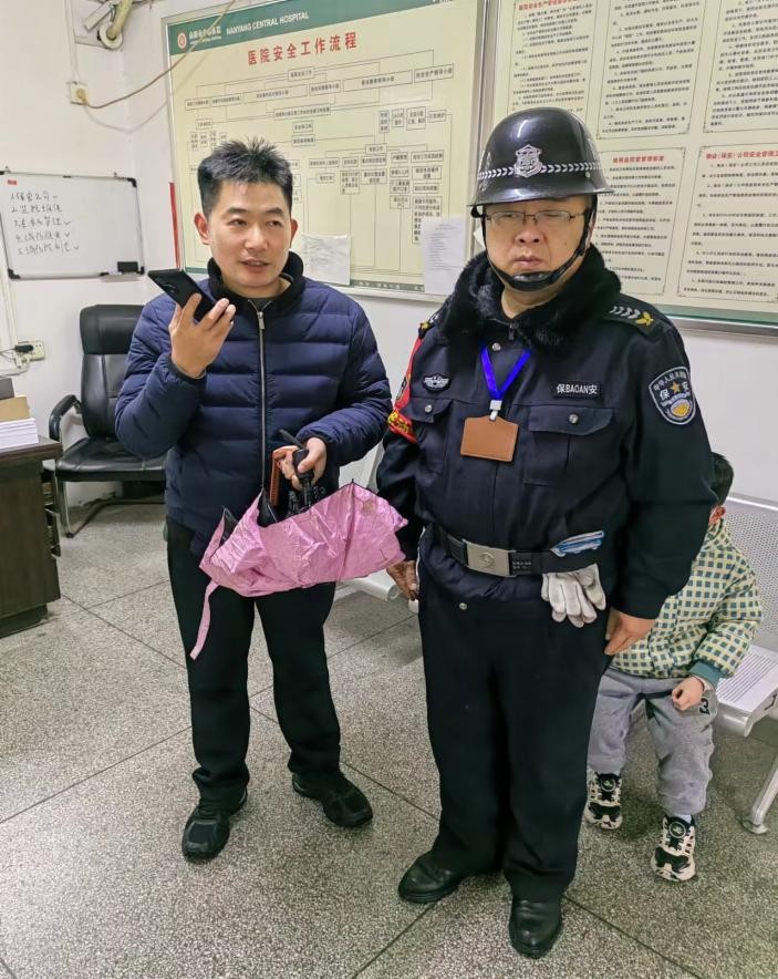 1月5 日15时许,南阳市中心医院一号楼一位90多岁老人在就医时与家人走散,家属寻求帮助。南阳市保安公司驻勤队长王风和迅速组织巡逻队和各值班岗点在医院内部寻找,并通过监控系统进行排查,终于在东一门被巡逻队员孙俊海找到,家属连连点头道谢。