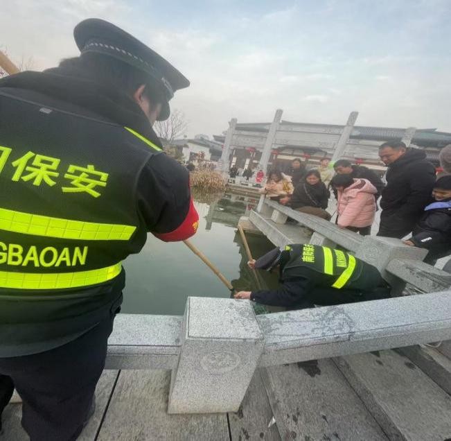 1月28日13时20分许,在卧龙岗草庐处一名游客的电话手表调入后院井中,用抄网多次打捞后未能取出。南阳市保安公司驻南阳卧龙岗游园班长海金鑫,自告奋勇地向物业借了一套渔裤后,用绳子将海金鑫送至井下将游客的手表打捞出来。游客对海金鑫乐于助人的举动无不交口称赞。