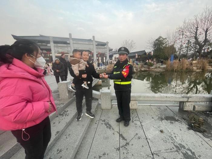 1月30日10时27分,南阳市保安公司驻卧龙岗游园队员丁嘉豪在卧龙岗三顾广场执勤时,看到一游客推着一小车上面坐着一女孩,经过铁马准备上台阶时,他怕出现意外便热情主动地上前帮忙,抬着小车上台阶。