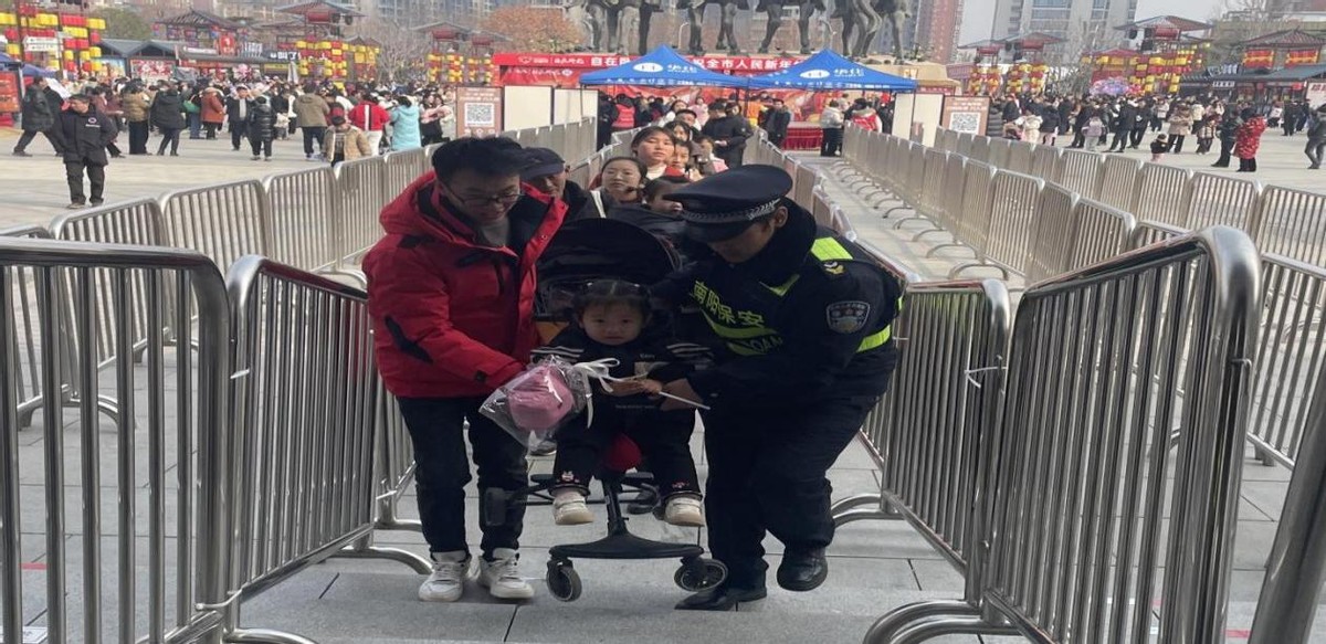2月2日11时37分,南阳市保安公司驻卧龙岗游园三顾广场岗位保安员邢凯在岗位执勤时,看到一位老人推着一个婴儿车,里面坐着孩子在经过铁马准备上台阶时容易出现意外情况,他就主动上前帮忙,将婴儿车抬上台阶,老人感动 得连连答谢。