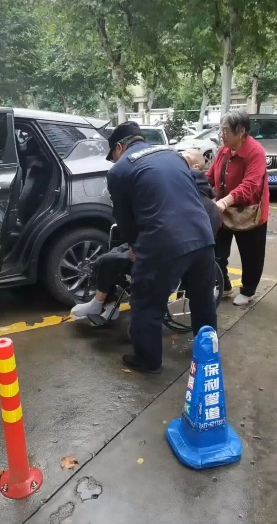 10月4日21时25分,南阳市第一人民医院急诊门前停了一辆电动三轮车,上面躺着一位行动不便的老先生需要到急诊科就诊。南阳市保安公司驻勤队员段金云、黄大仓发现后,立即主动上前帮忙,同患者家属一起将患者送急诊救治。家属十分感激,称赞“保安弟兄好样的”。
