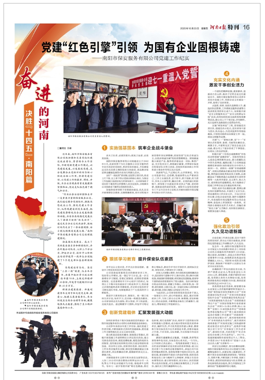 《河南日报》刊发长篇通讯 全面展示南阳市保安公司党建工作成就